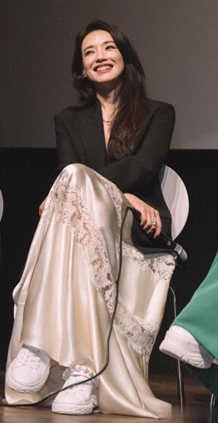 股票杠杆平台哪个好用舒淇亮相第30届釜山电影节, 穿蕾丝裙配黑色西服, 整个人美到发光