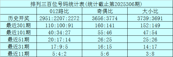 上期回顾:排列三第2025306期奖号为:178。奖号形态组六,大小比2:1,奇偶比2:1,012路0:2:1。